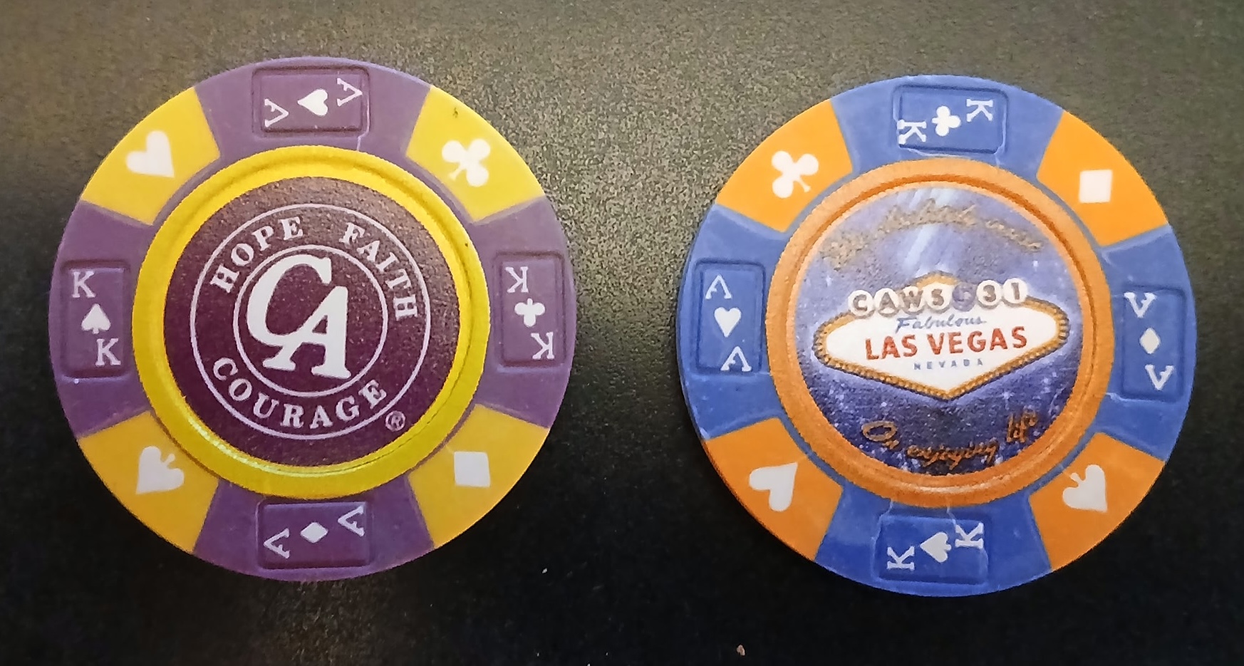 Poker Chips, Playing Cards, Luggage Tag – 2015 – CAWS Convention 31st CA World Convention: We Absolutely Insist on Enjoying Life: May 21, 22, 23, 24, 25, 2015, Las Vegas, NV Private Collection, Ruby C From Rodney D. Missouri